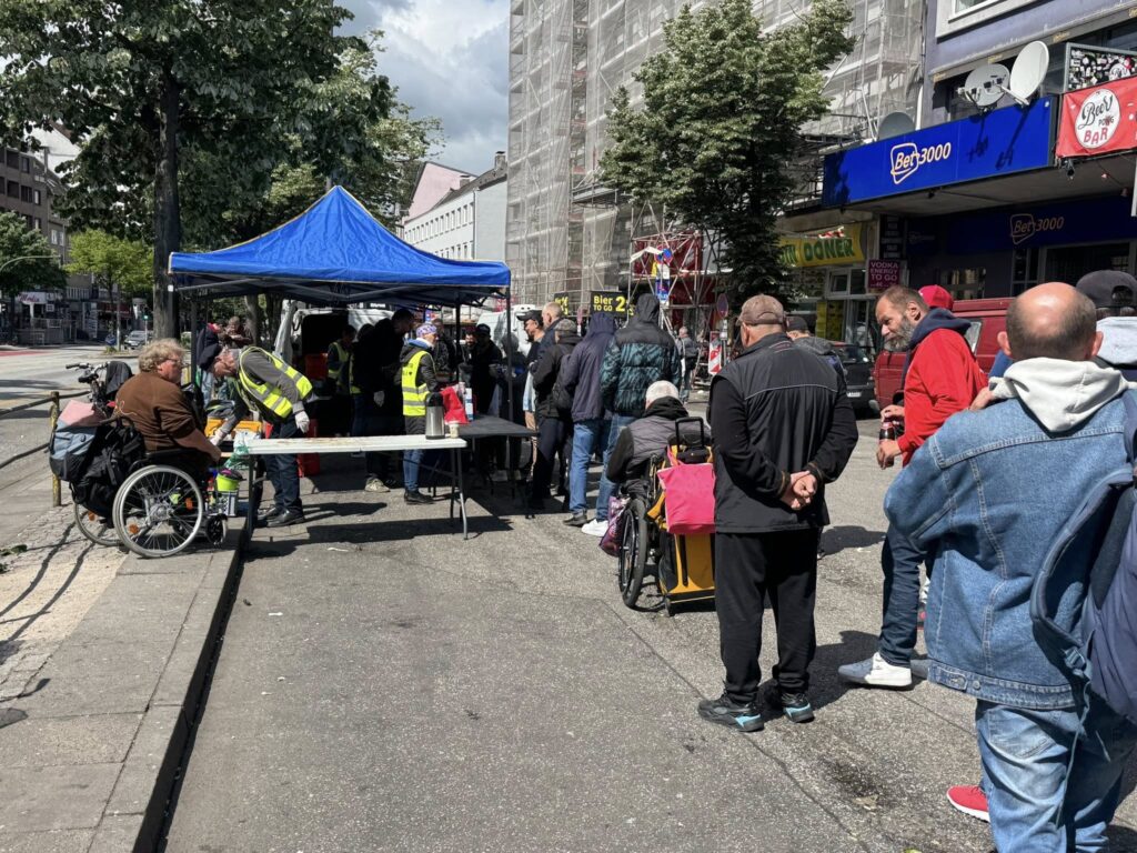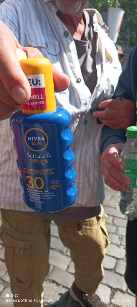 Gemeinsam mit den KollegInnen vom Gesundheitsmobil Hamburg bitten wir immer eine Flasche Wasser extra zum Verschenken dabei zu haben, denn Wasser rettet Leben.